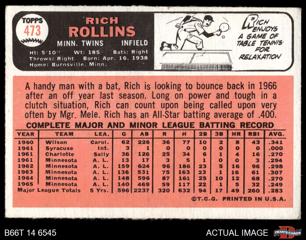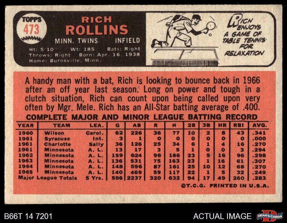 1966 Topps #473 Rich Rollins 3 - VG