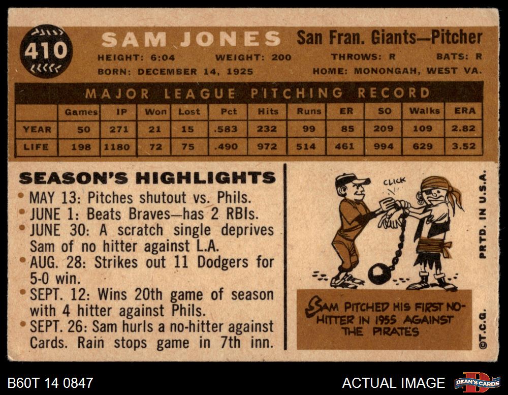 1960 Topps #410 Sam Jones 4.5 - VG/EX+