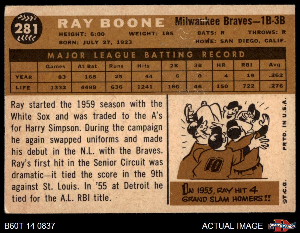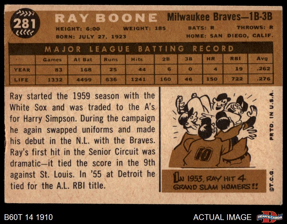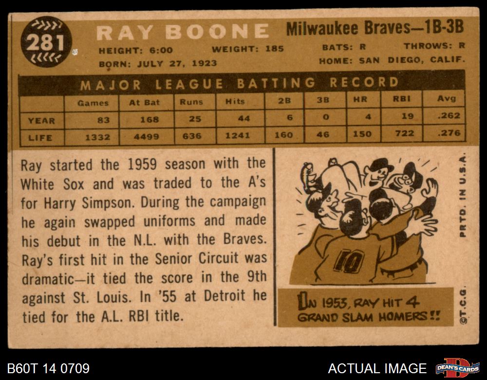 1960 Topps #281 Ray Boone