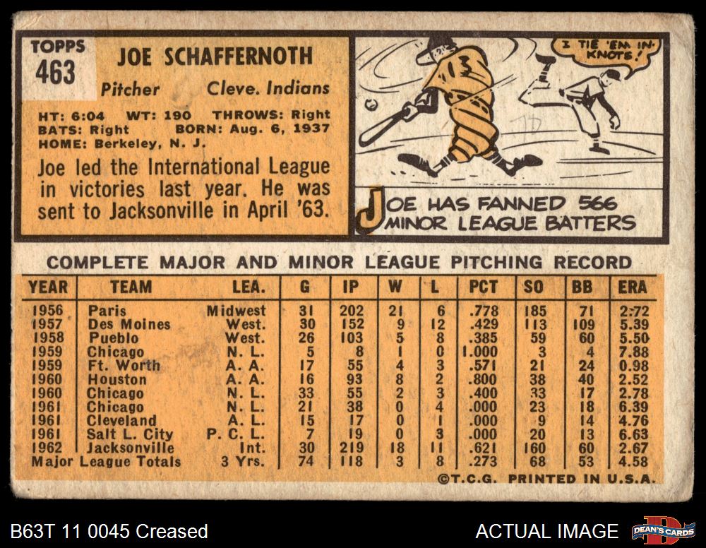 1963 Topps #463 Joe Schaffernoth 1 - POOR