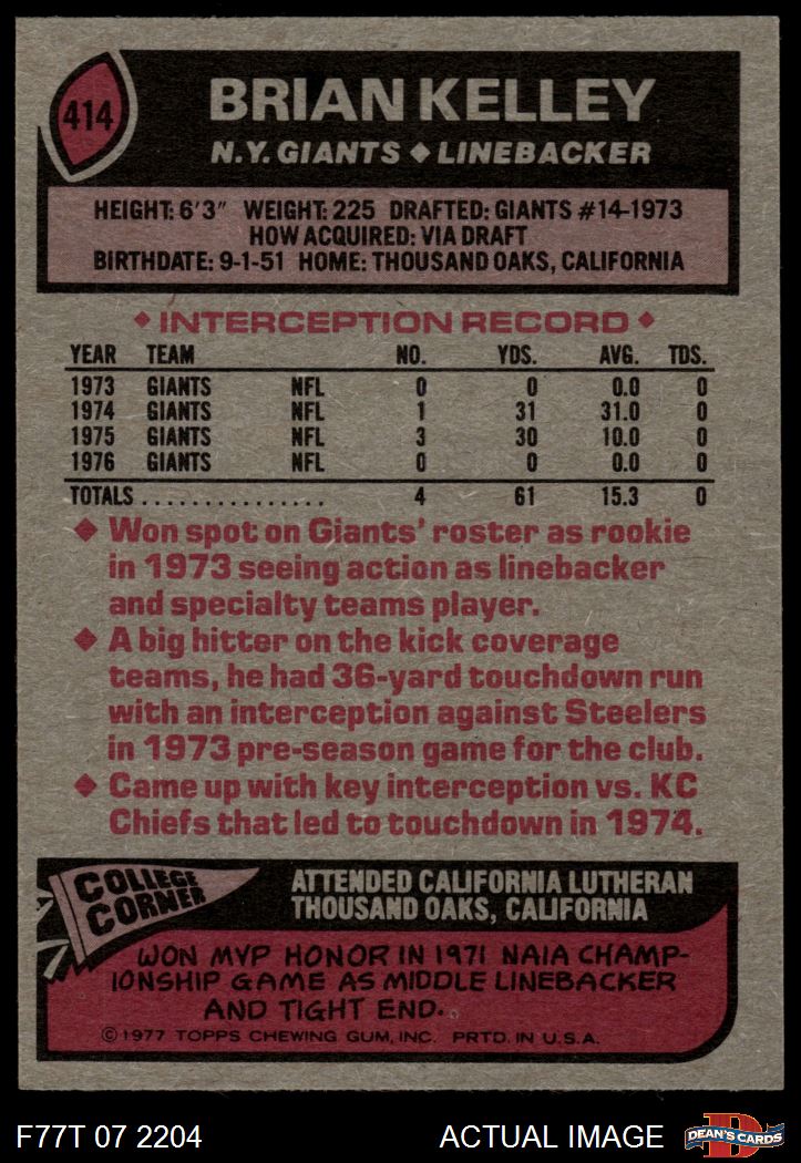 1977 Topps #414 Brian Kelley
