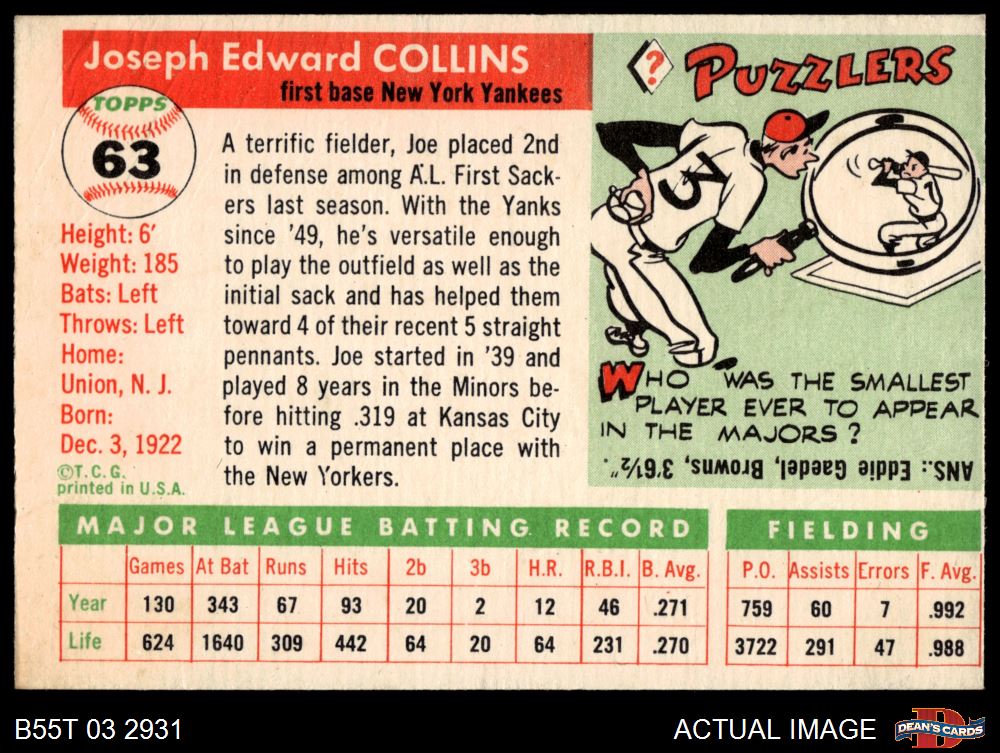 1955 Topps #63 Joe Collins