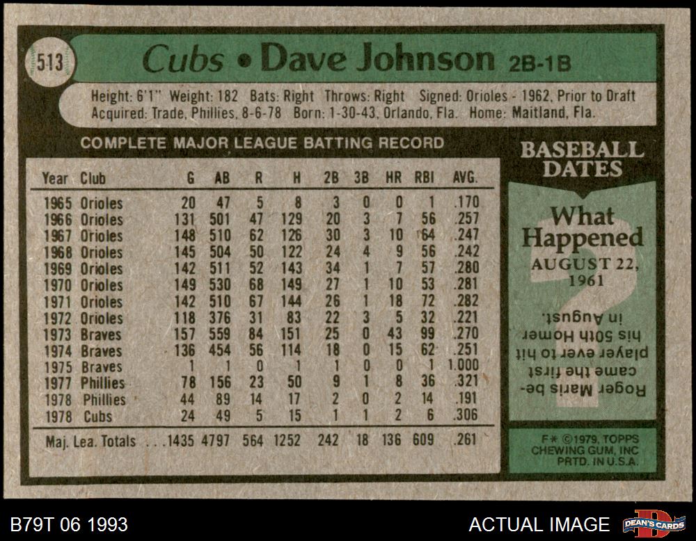 1979 Topps #513 Davey Johnson 6 - EX/MT