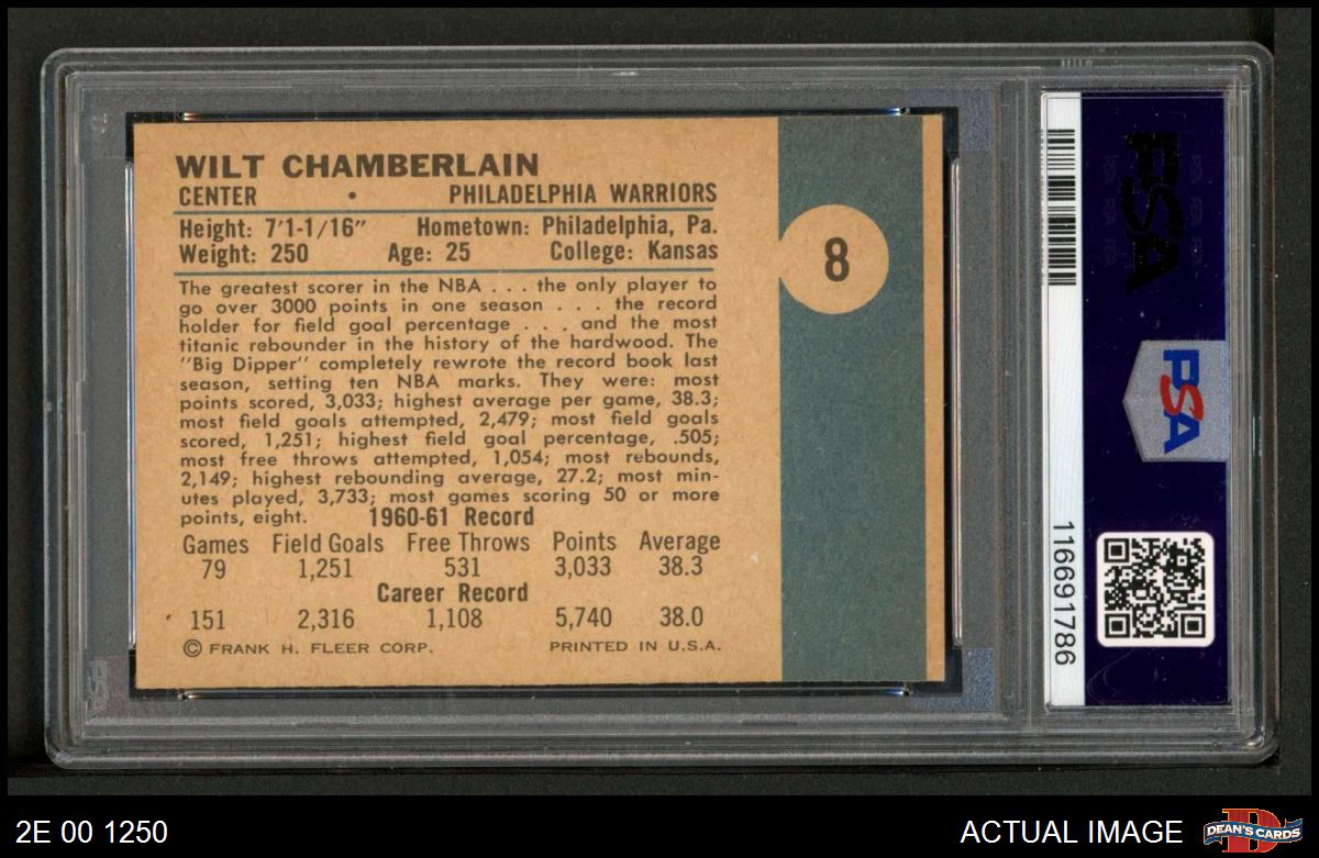 1961 Fleer #8 Wilt Chamberlain PSA 5 - EX