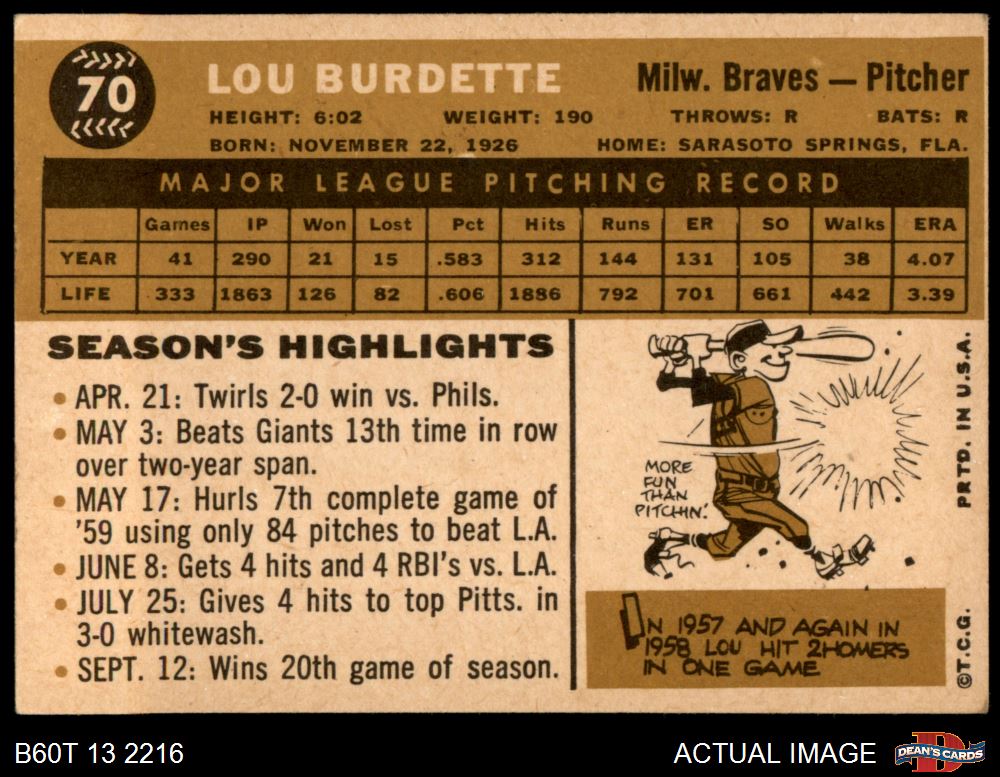 1960 Topps #70 Lew Burdette 4.5 - VG/EX+