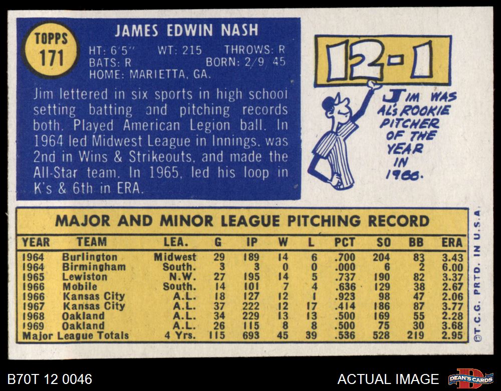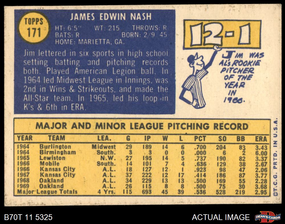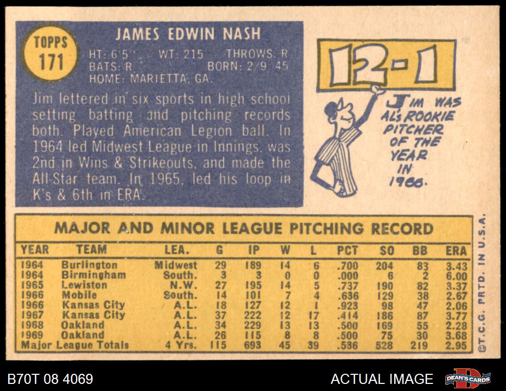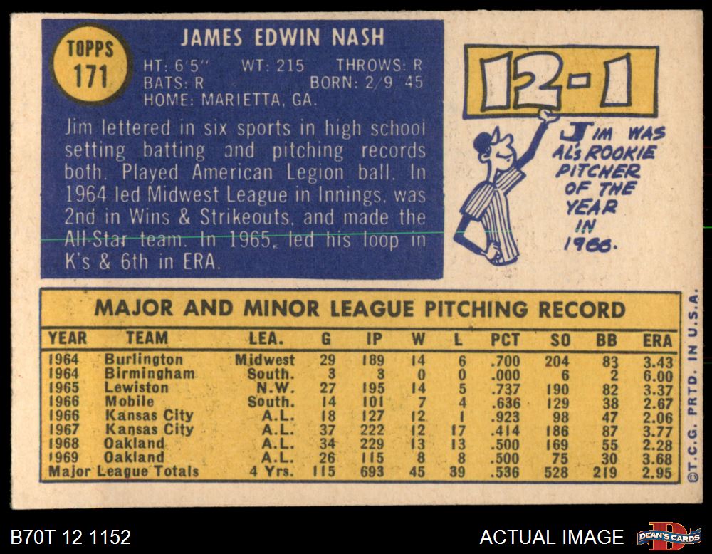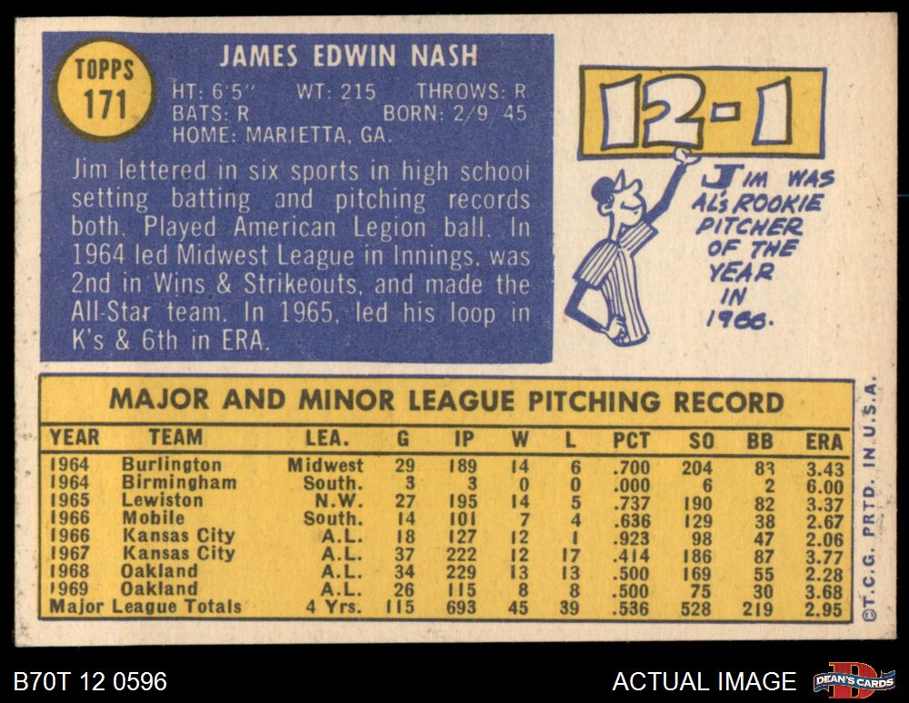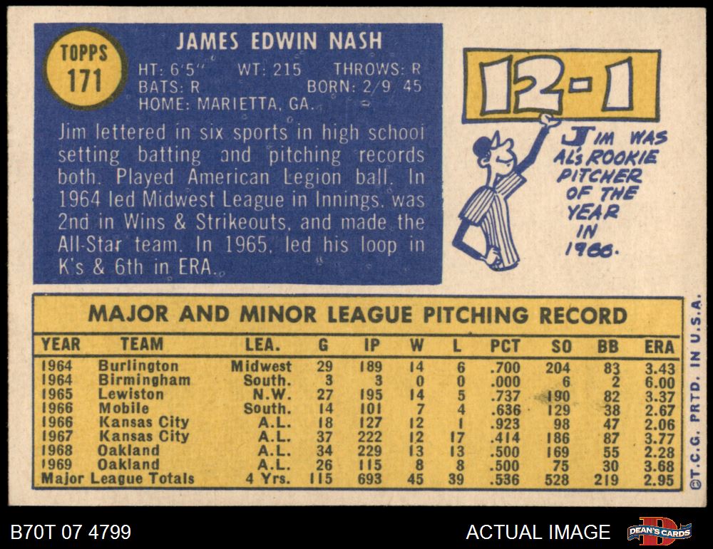 1970 Topps #171 Jim Nash