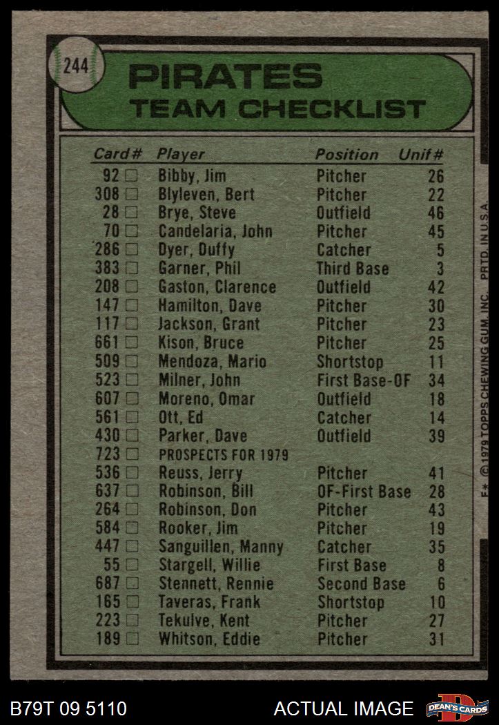 1979 Topps #244 - Chuck Tanner Pirates Team Checklist 6 - EX/MT