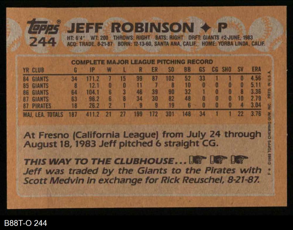 1988 Topps #244 Jeff D. Robinson 8 - NM/MT