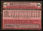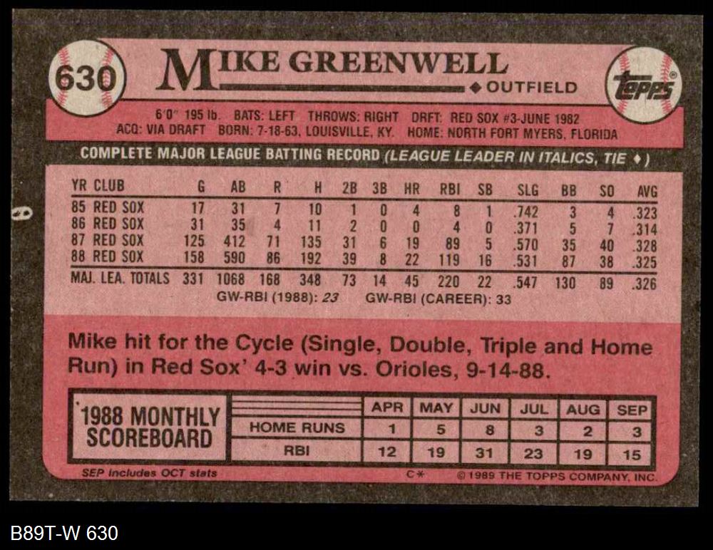 1989 Topps #630 Mike Greenwell 8 - NM/MT