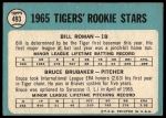 1965 Topps #493 - Bill Roman / Bruce Brubaker Tigers Rookies 3 - VG