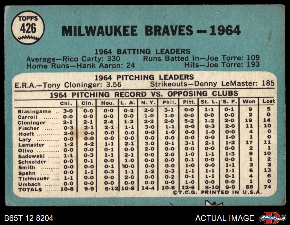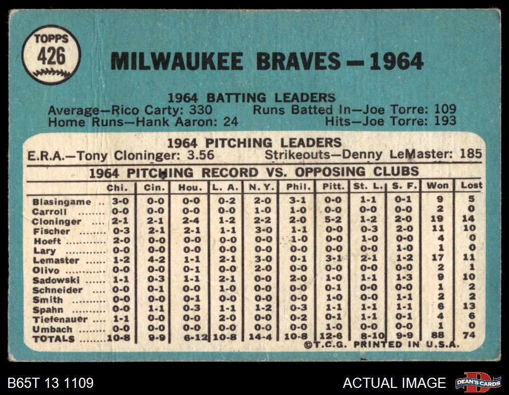 1965 Topps #426 Braves Team 1.5 - FAIR
