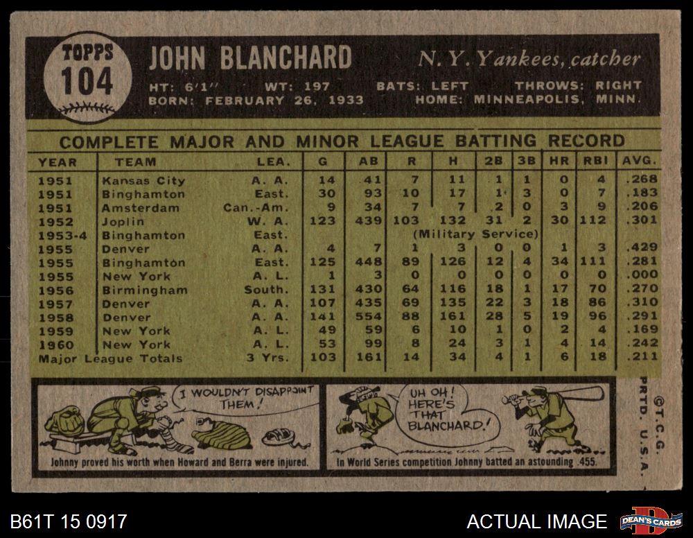 1961 Topps #104 John Blanchard 3 - VG