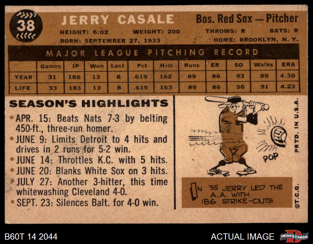 1960 Topps #38 Jerry Casale 3.5 - VG+