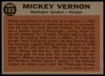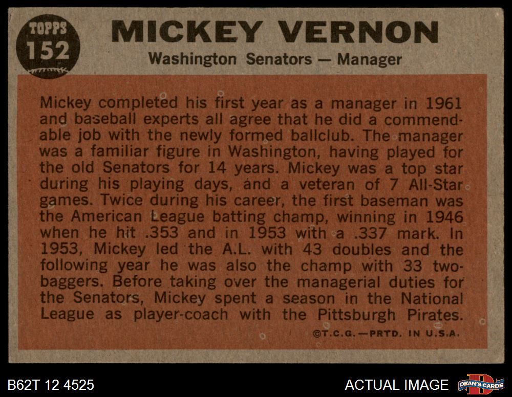 1962 Topps #152 NRM Mickey Vernon 4 - VG/EX