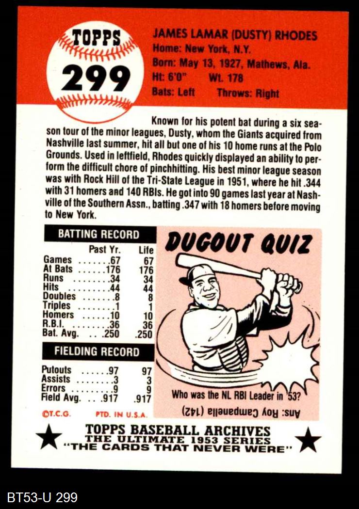 1953 Topps Archives / Reprint (1,400 available)1953 Topps Archives Giants (70 available)