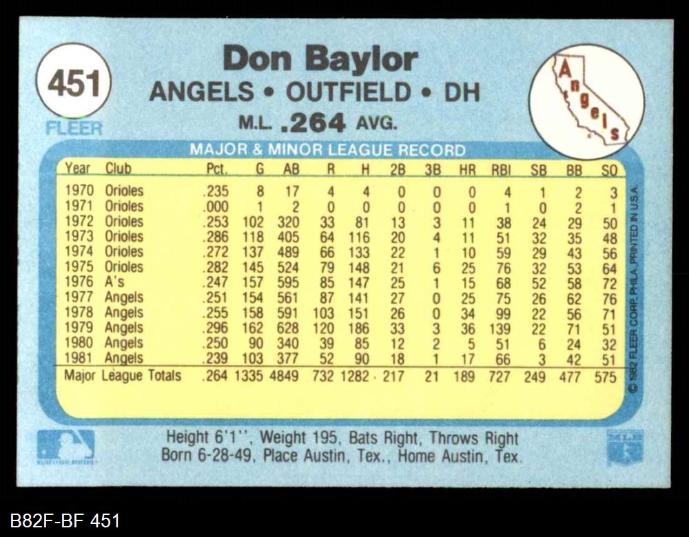 1982 Fleer #451 Don Baylor