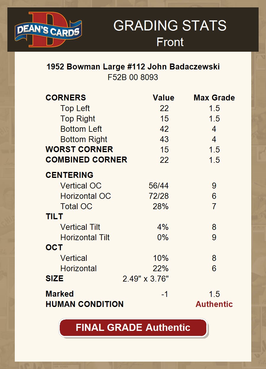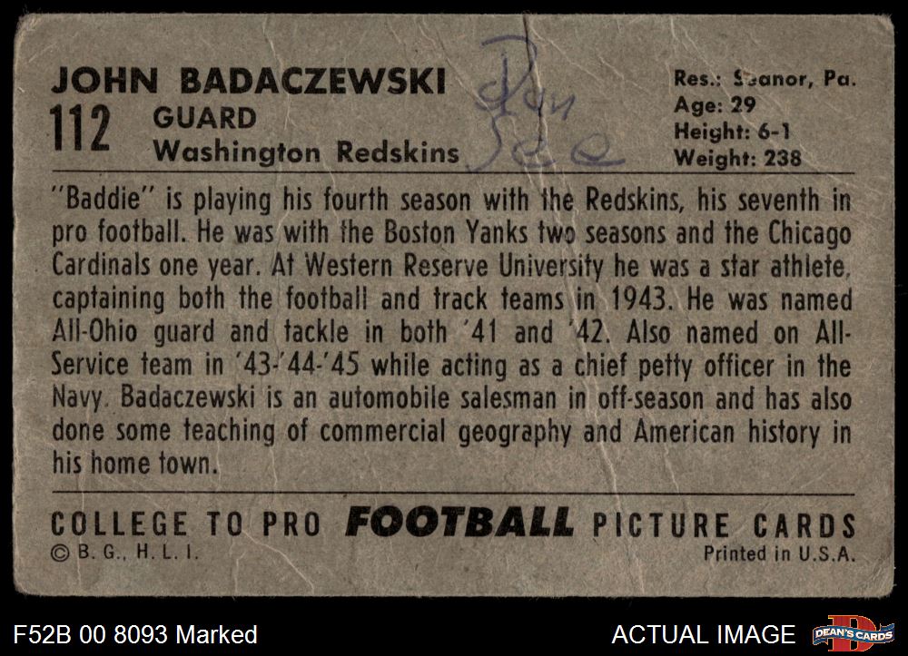 1952 Bowman Large #112 John Badaczewski AUTHENTIC