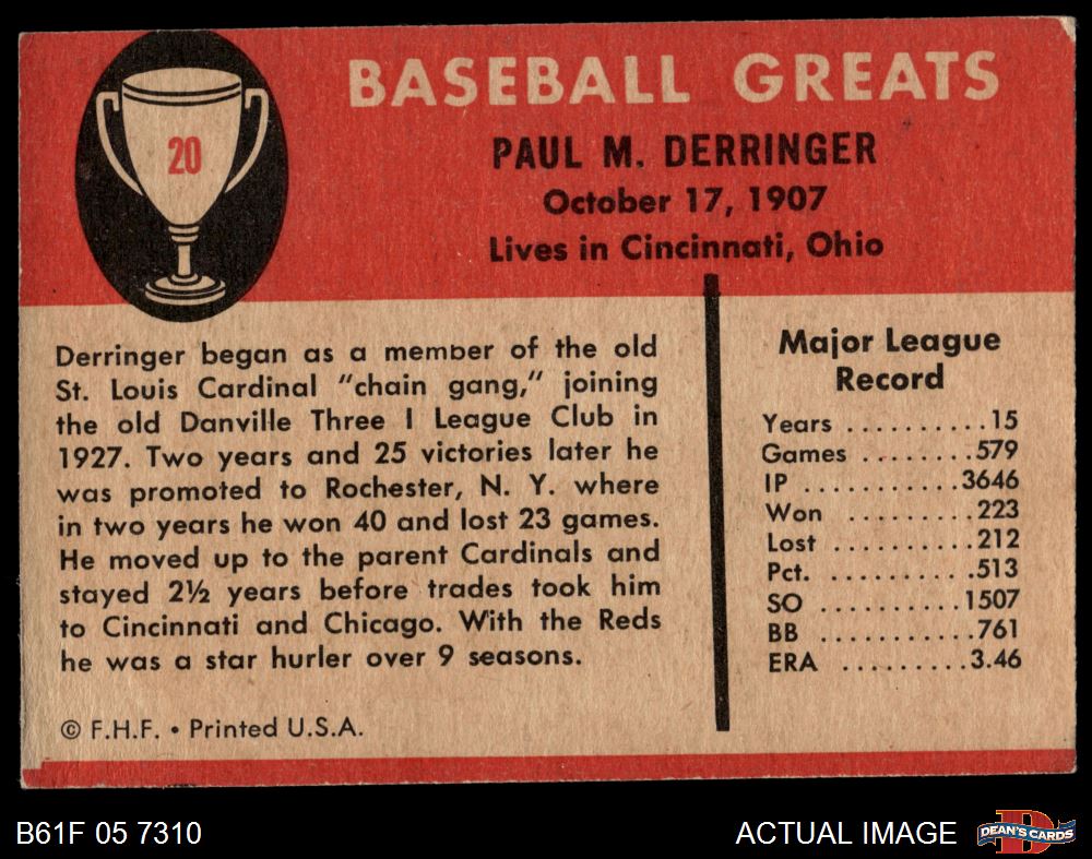 1961 Fleer #20 Paul Derringer