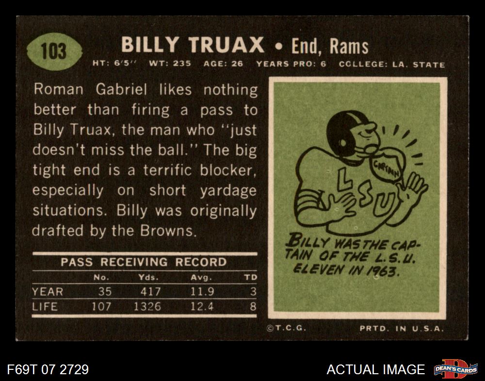 1969 Topps #103 Billy Truax 6 - EX/MT