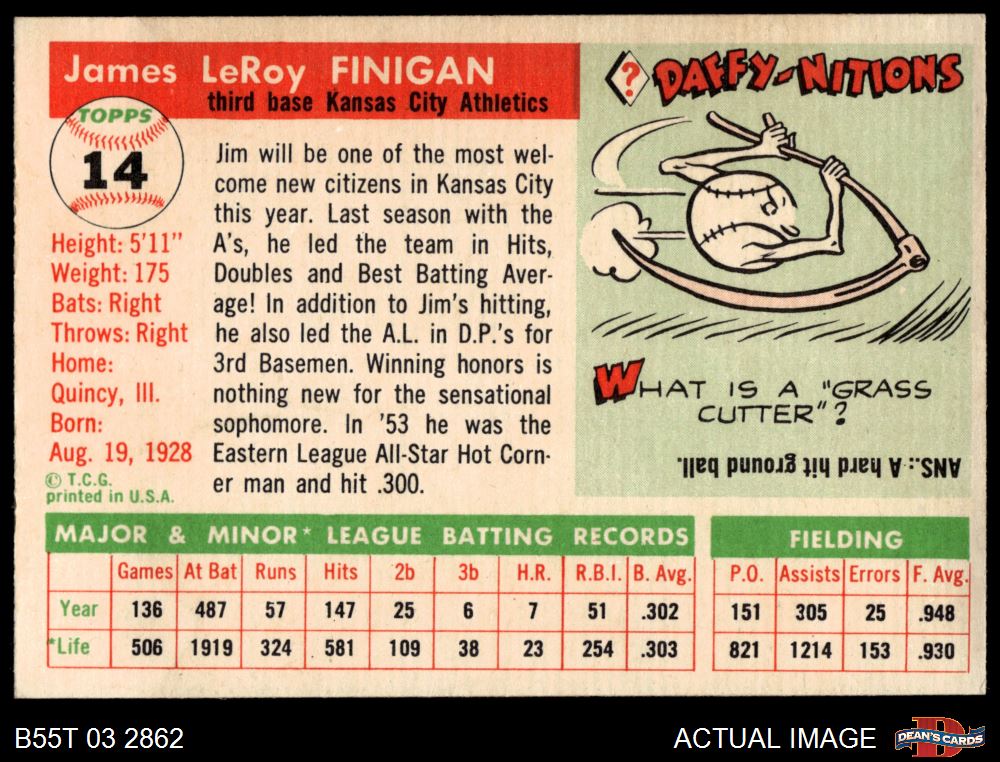 1955 Topps #14 Jim Finigan 4 - VG/EX