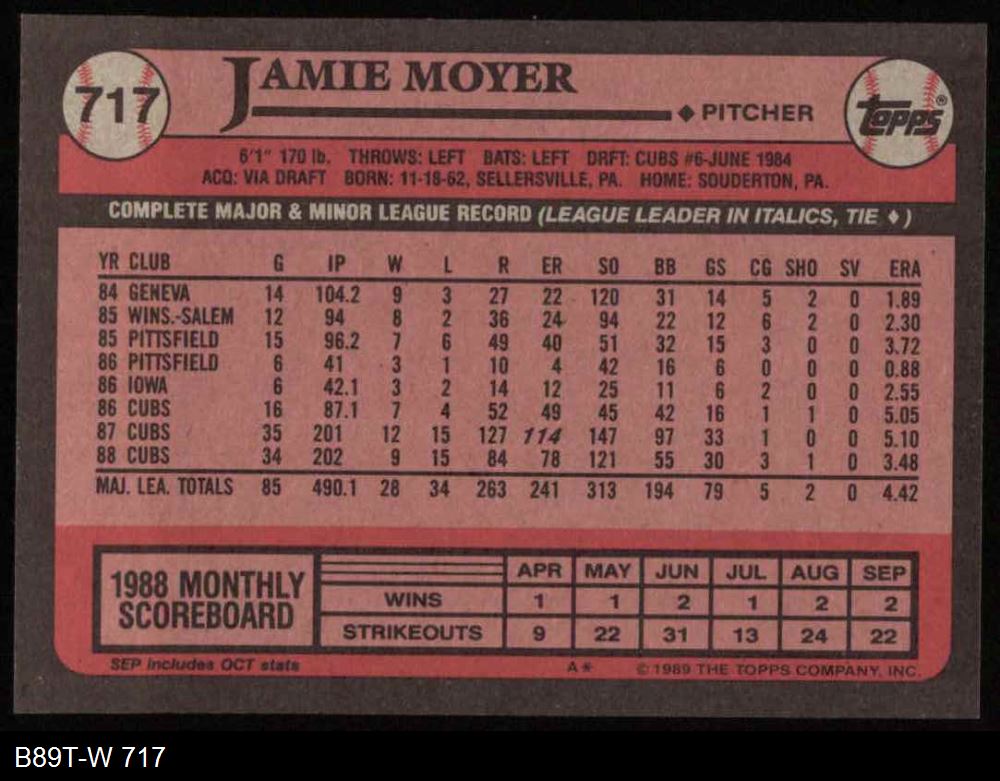 1989 Topps #717 Jamie Moyer