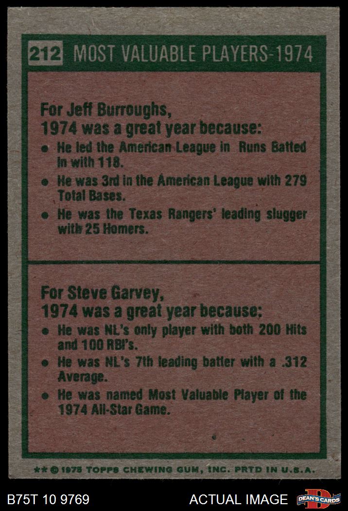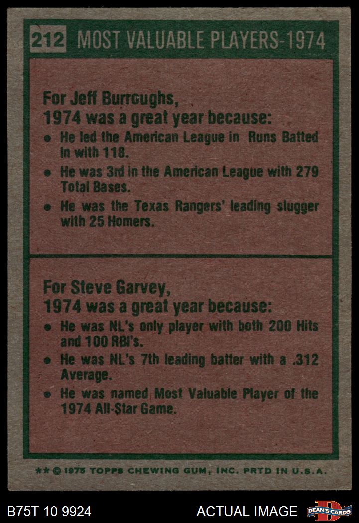 1975 Topps #212 - Jeff Burroughs / Steve Garvey 1974 MVPs 5 - EX