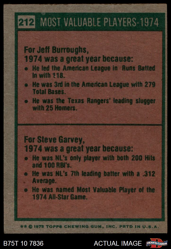 1975 Topps #212 - Jeff Burroughs / Steve Garvey 1974 MVPs 6 - EX/MT