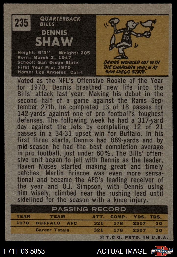 1971 Topps #235 Dennis Shaw 6 - EX/MT