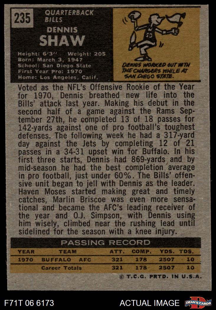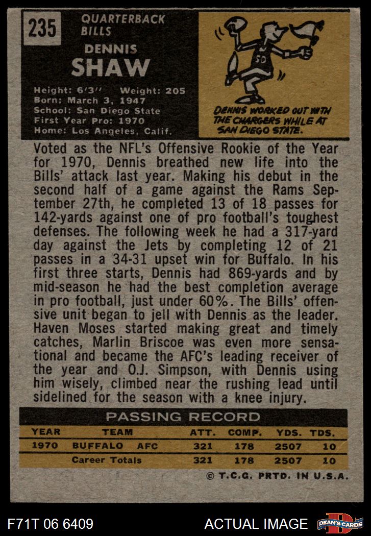1971 Topps #235 Dennis Shaw 7 - NM
