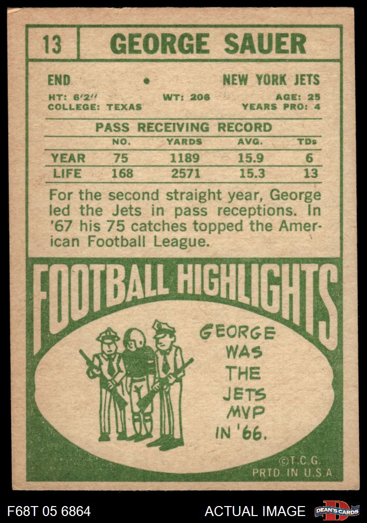 1968 Topps Football Cards (2,552 available)1968 Topps Jets (84 available)