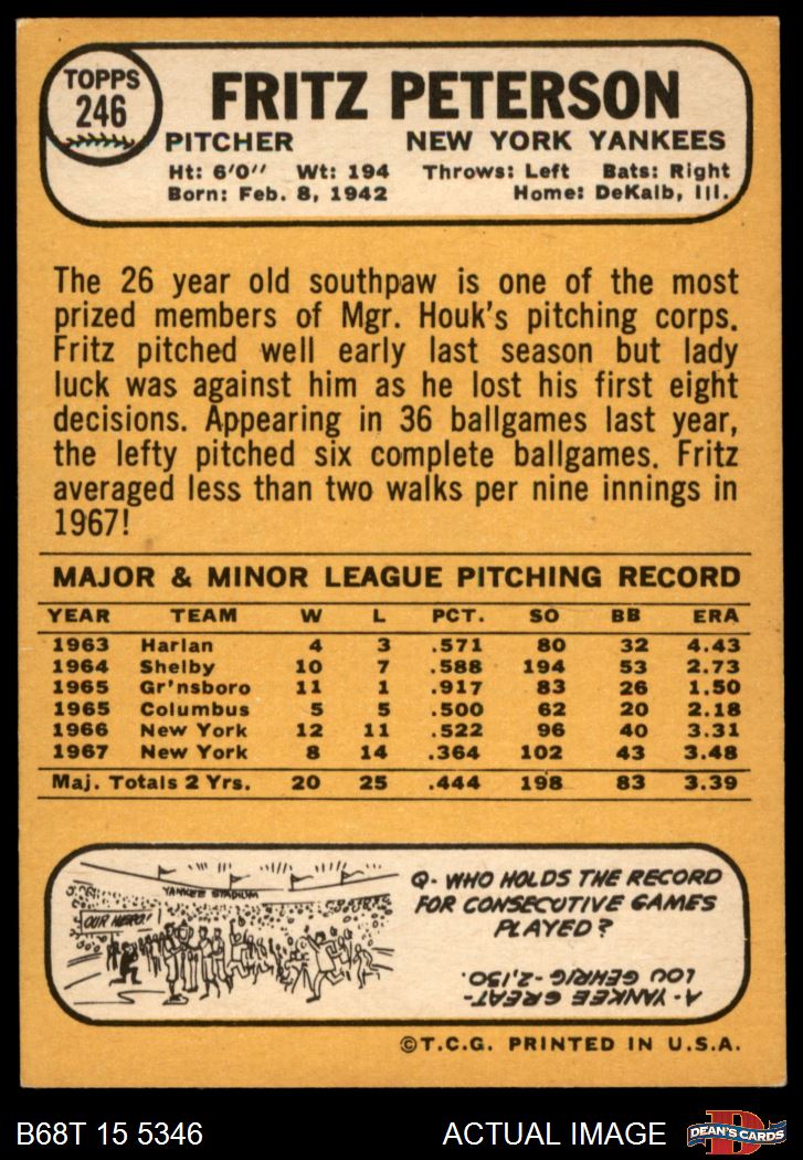 1968 Topps #246 Fritz Peterson 6 - EX/MT