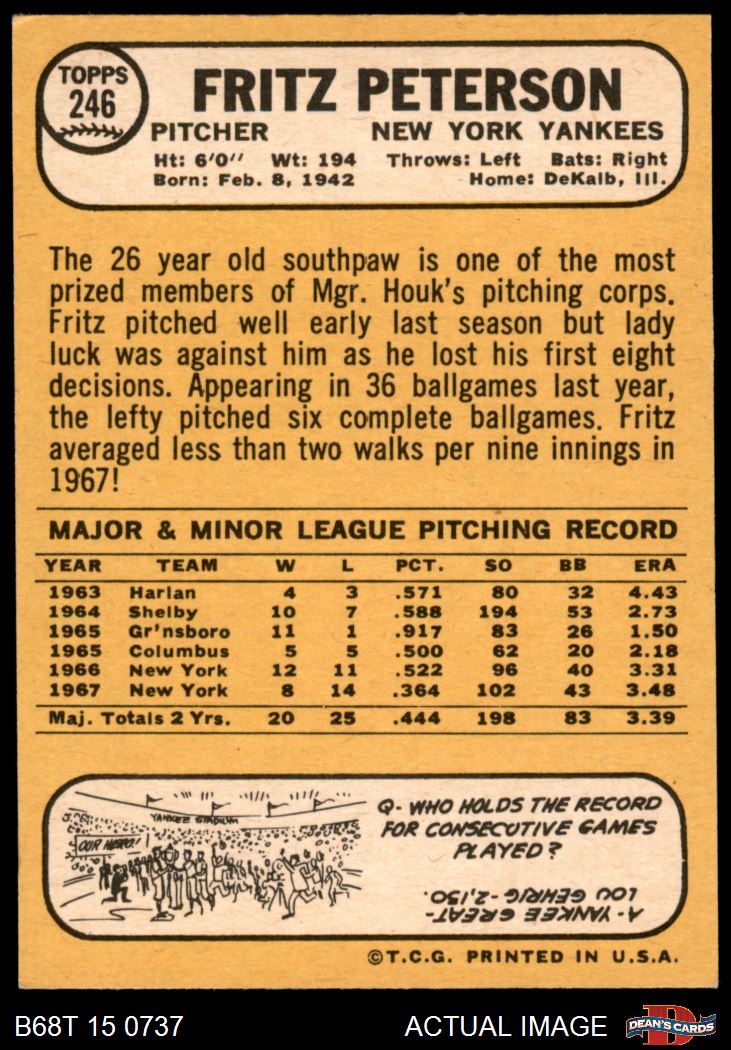 1968 Topps #246 Fritz Peterson 7 - NM
