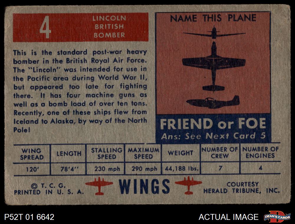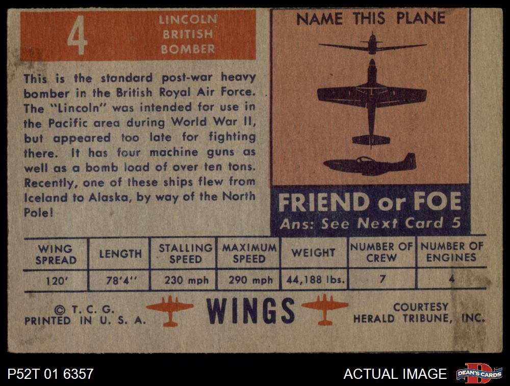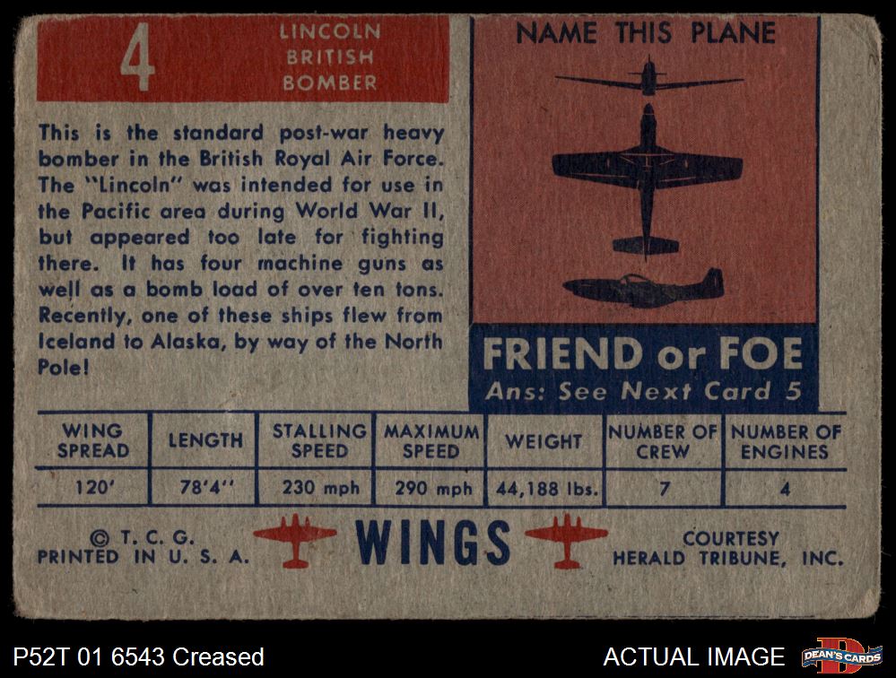 1952 Topps Wings #4 Lincoln
