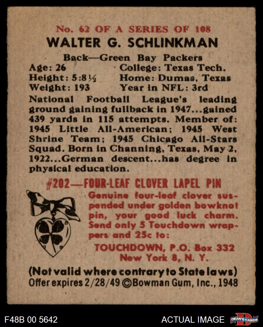 1948 Bowman #62 Walt Schlinkman 5 - EX