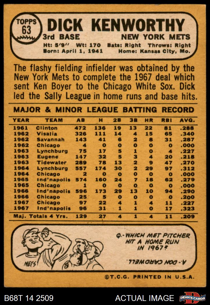 1968 Topps #63 Dick Kenworthy 6 - EX/MT