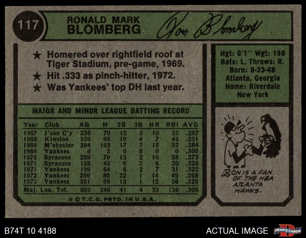 1974 Topps #117 Ron Blomberg 5 - EX