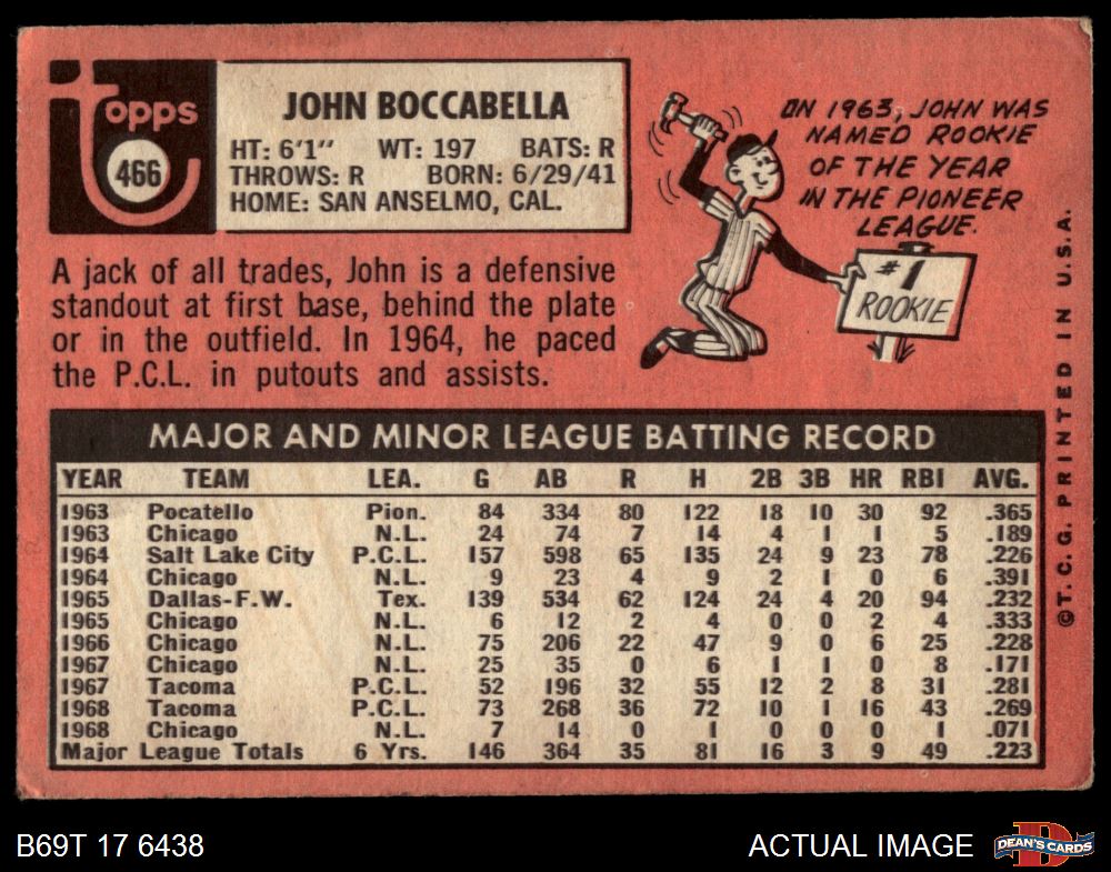 1969 Topps #466 John Boccabella