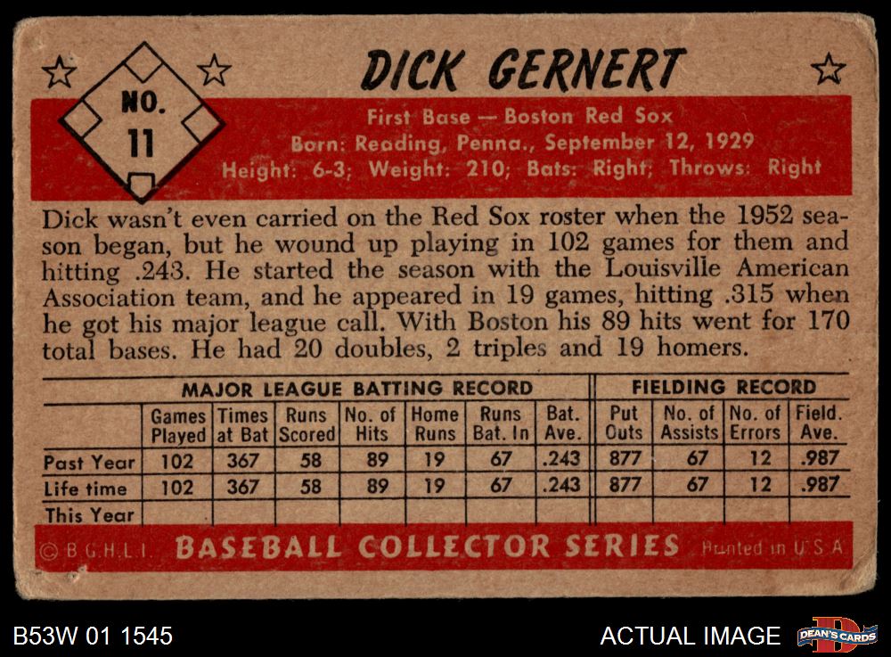 1953 Bowman B&W #11 Dick Gernert 1 - POOR