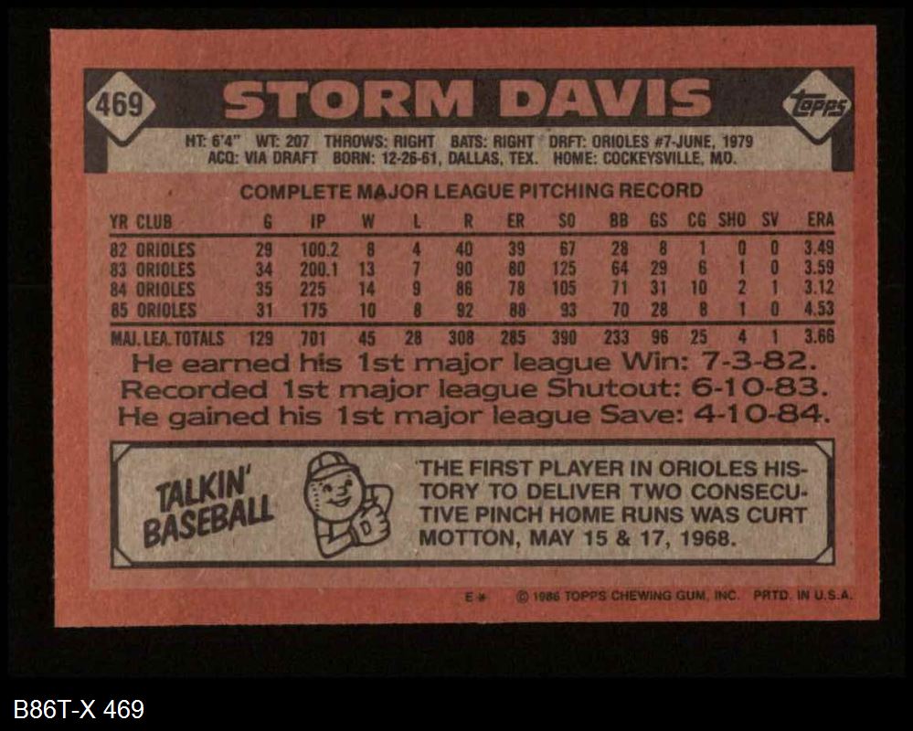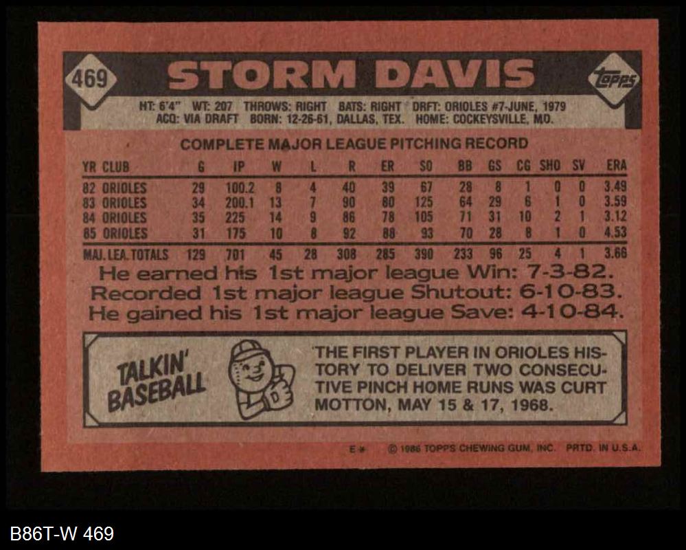 1986 Topps #469 Storm Davis