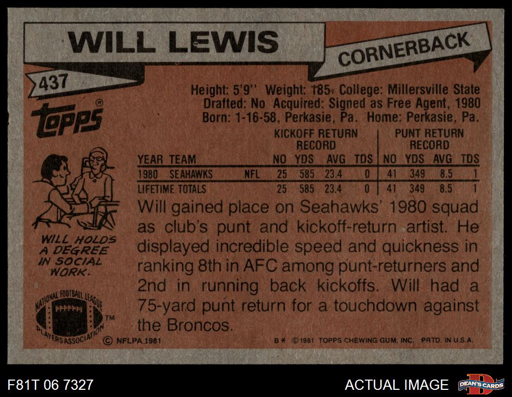 1981 Topps #437 Will Lewis 6.5 - EX/MT+
