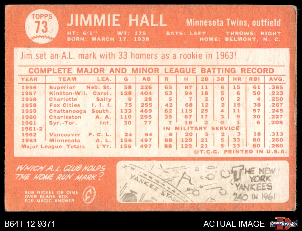 1964 Topps #73 Jimmie Hall Front Thumbnail