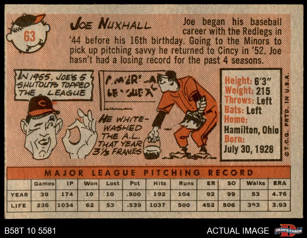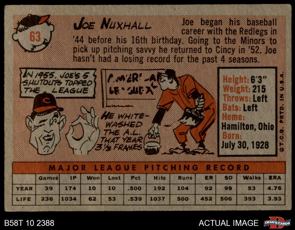 1958 Topps #63 Joe Nuxhall 4 - VG/EX