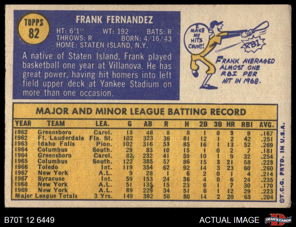 1970 Topps #82 Frank Fernandez 4 - VG/EX
