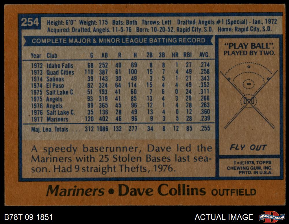 1978 Topps #254 Dave Collins 4 - VG/EX