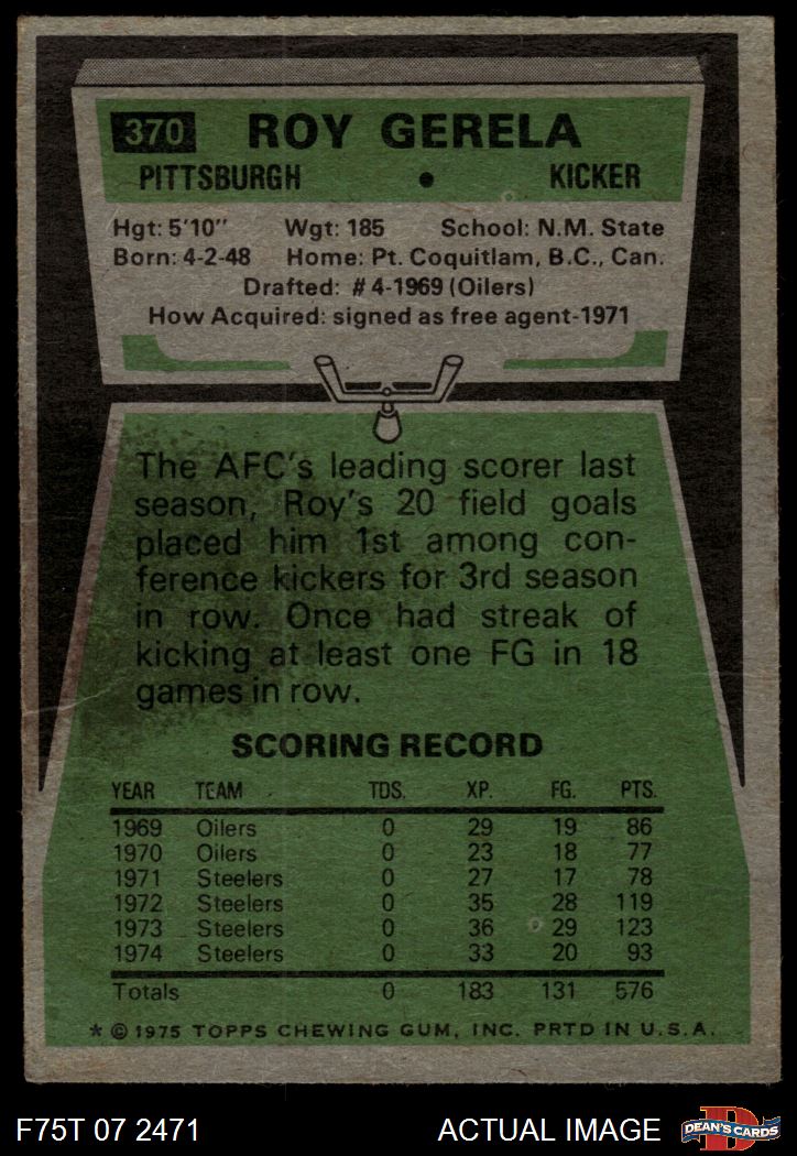 1975 Topps #370 Roy Gerela 2 - GOOD