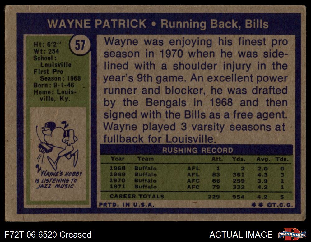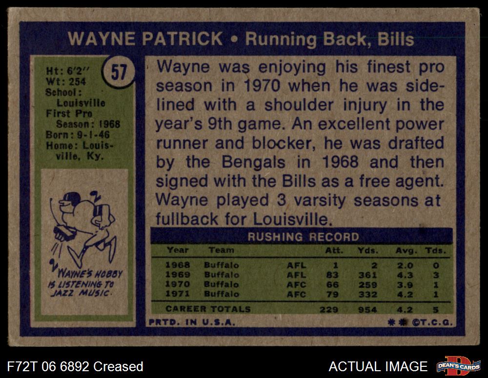 1972 Topps #57 Wayne Patrick Front Thumbnail