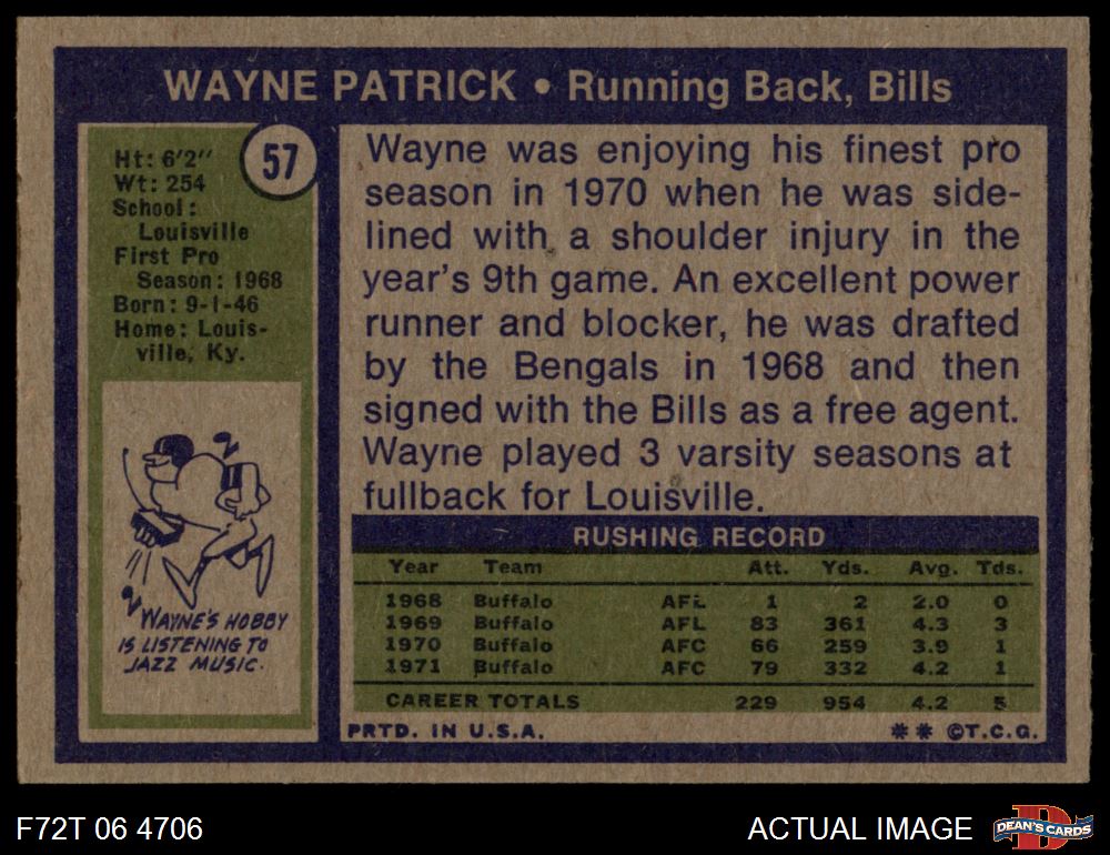 1972 Topps #57 Wayne Patrick 6 - EX/MT