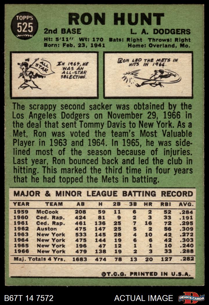 1967 Topps #525 Ron Hunt