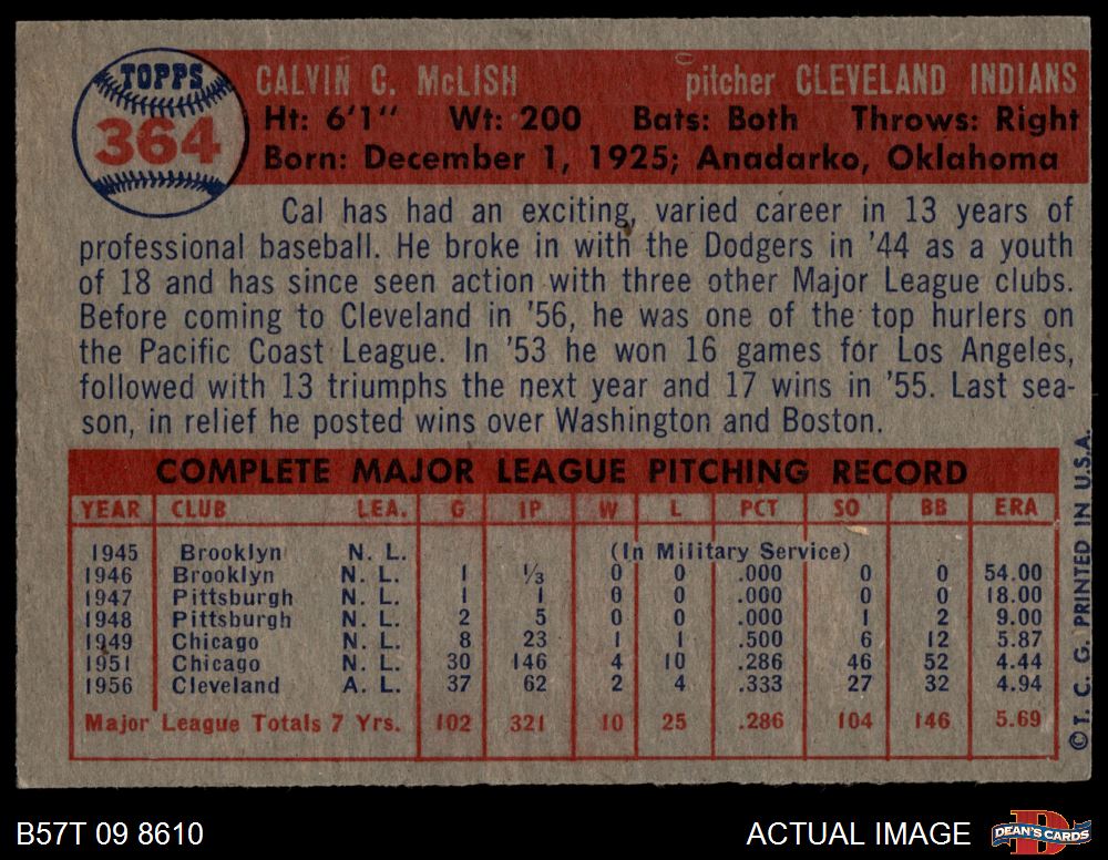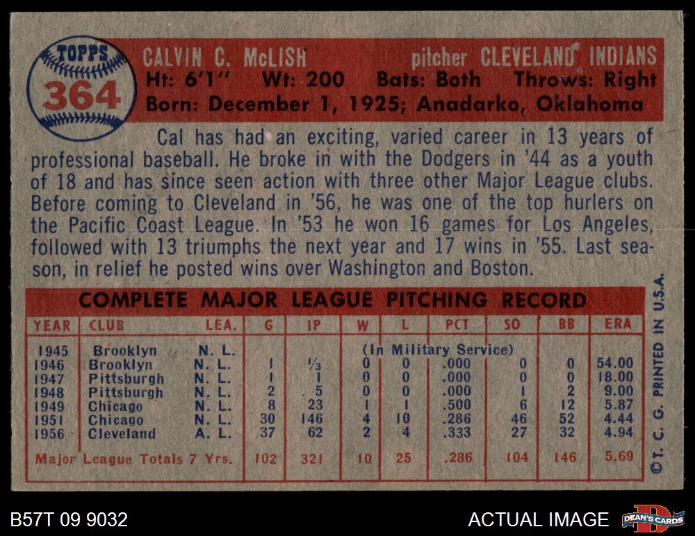 1957 Topps #364 Cal McLish 5 - EX