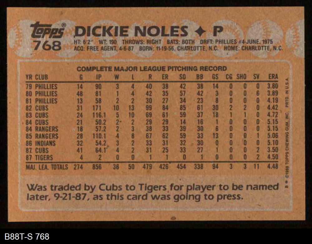 1988 Topps #768 Dickie Noles